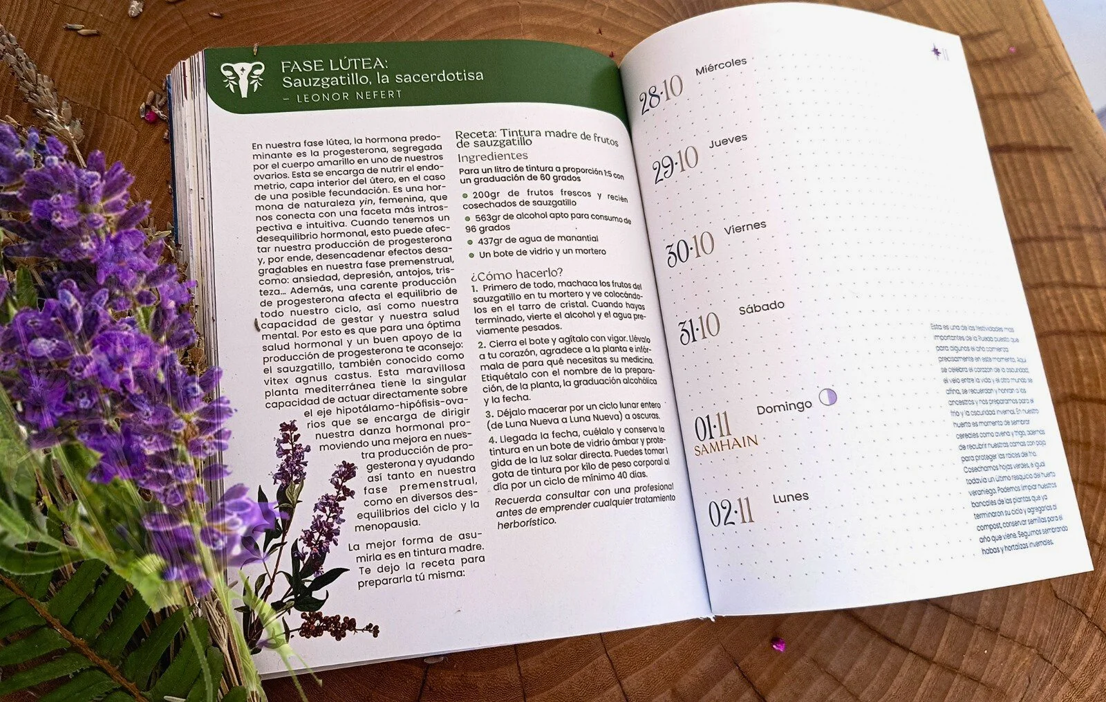 El Sincrodiario Savia Lunar es una agenda-diario lunar como ninguna otra pues teje puentes entre las diferentes culturas, y nos aporta muchísima información sobre plantas medicinales, ciclicidad, salud femenina, astrología así como escritos sobre energías femeninas de las culturas antiguas. Su propósito es acompañarnos en nuestro camino de autoconocimiento, consciencia y bienestar. La edición de 2026 está inspirada por el rumbo del Norte; entre sus páginas encontrarás: